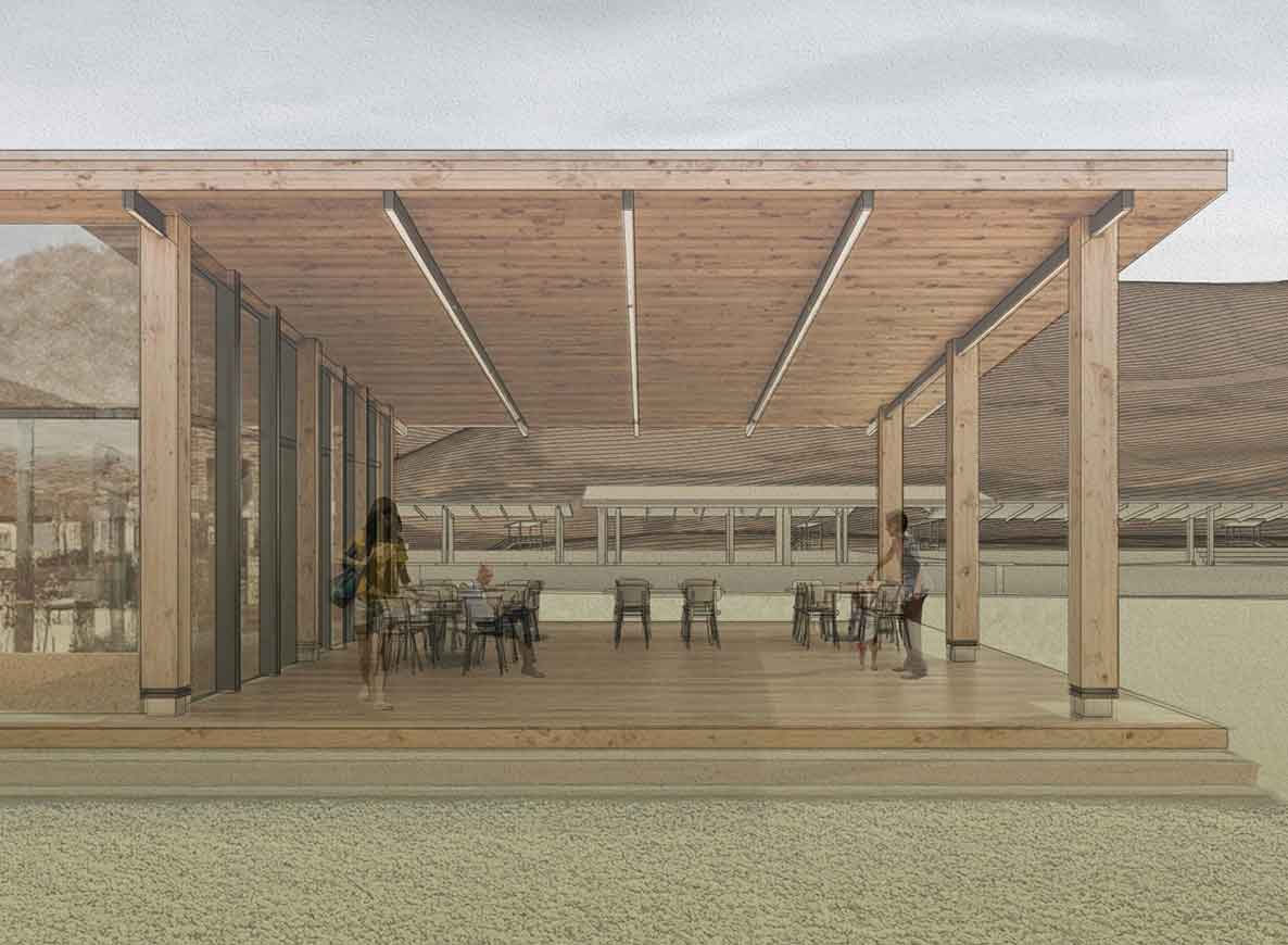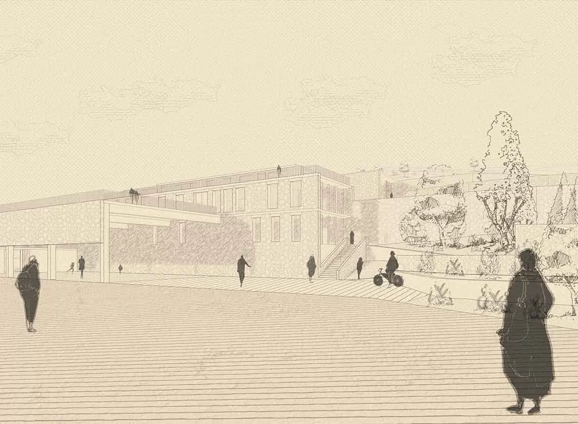 The Olive Study Center is conceived as a productive enclave that seeks to highlight the tradition of olive oil production while connecting it with community life and tourism. The project is organized into two parallel volumes, one for processing and the other for gathering, learning, and cultural exchange. Both structures are set within former olive fields and linked by transitional pathways that mediate between productive and public spaces, incorporating shaded courtyards and pauses that allow visitors to engage with and observe the different stages of olive oil production.